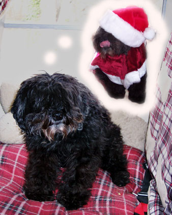 "I see Santa!" exclaimed Scruffy.  "Santa is very furry, and has a pink tongue!"