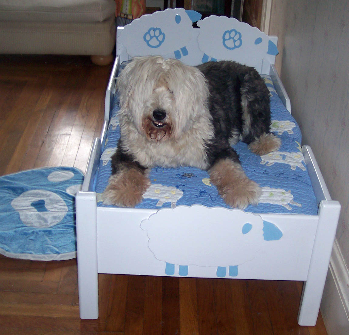 Cricky fell for the trap. She came bounding in to "show the men" how to make the bed.