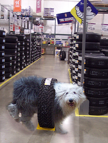 Meanwhile, back at the tire bay, Wiggle was finishing up with her fitting. "These feel wonderful!" she told the guys! I feel like I could drive 100,000 miles now! Four new tires! My friends will never believe it!"